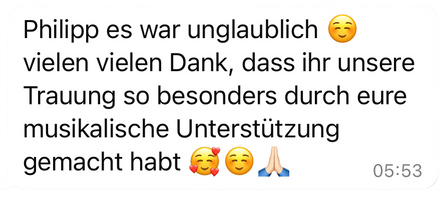 Dieser eine Song, den ihr immer wieder gemeinsam hört, der Herzschlag wird schneller, du kennst jede Songzeile auswendig. Natürlich spielen wir deinen Lieblingssong auf deiner Hochzeit und sorgen für einen ganz besonderen Gänsehautmoment bei deiner Trauung.